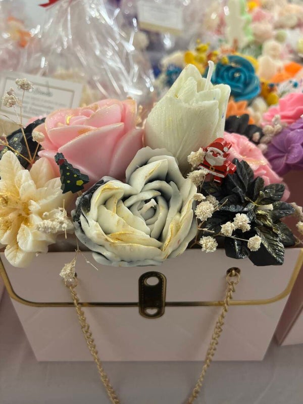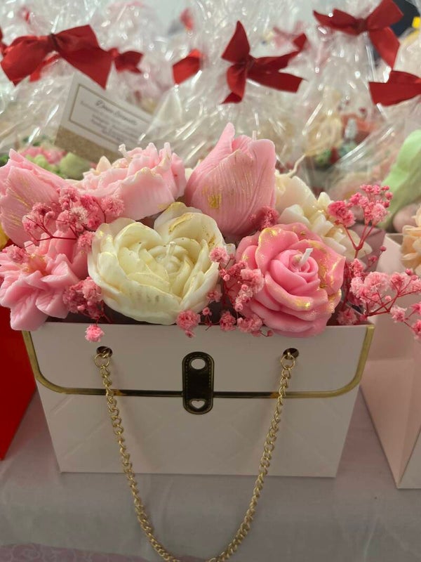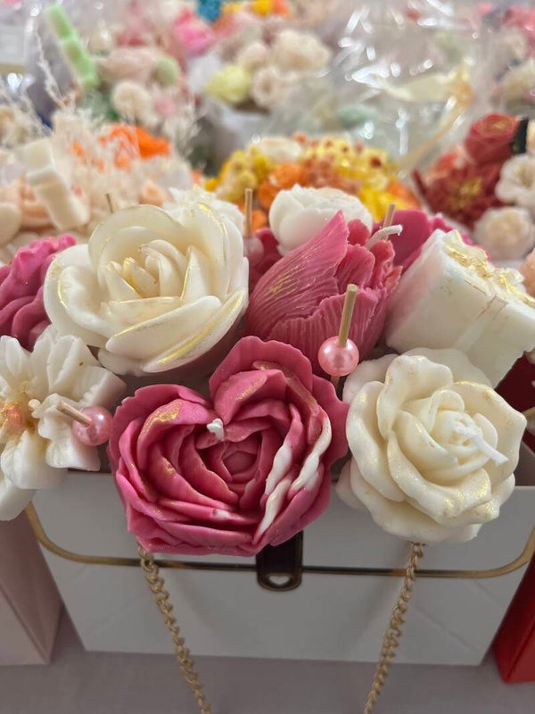 Jolie bouquet de fleurs en cire végétale et parfum de grasse.